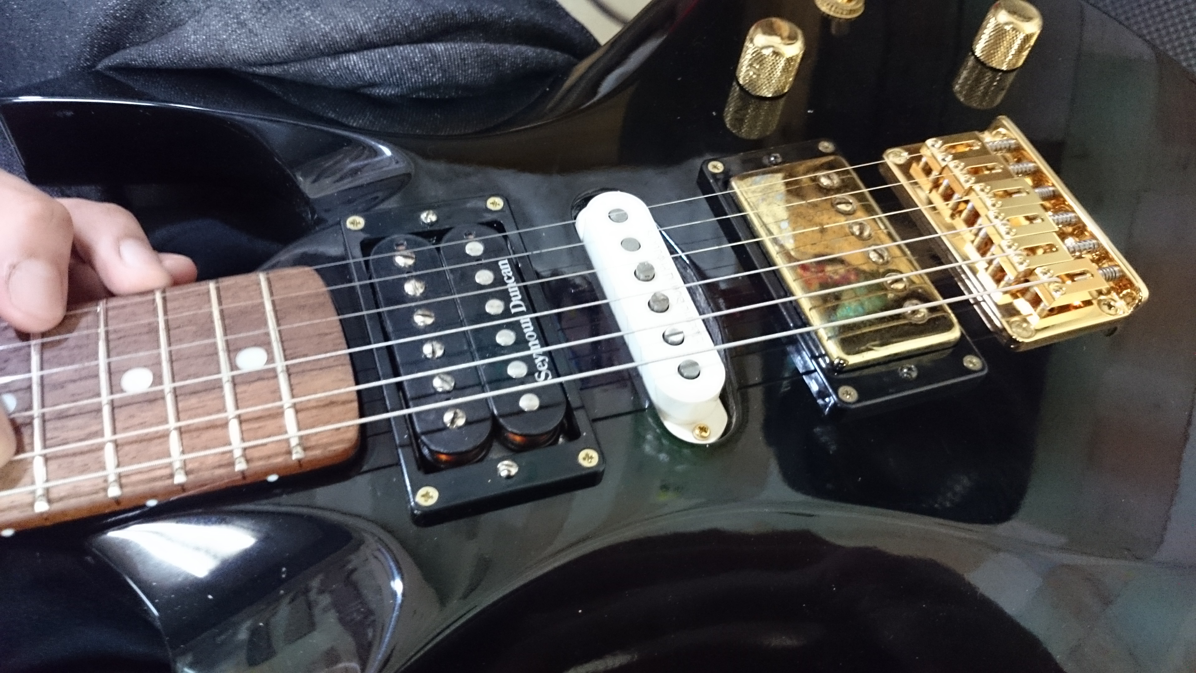 センターはFenderUSAのストラトから外した物をセレクト。手持ちに黒のPUカバーが無いので白カバーに…笑