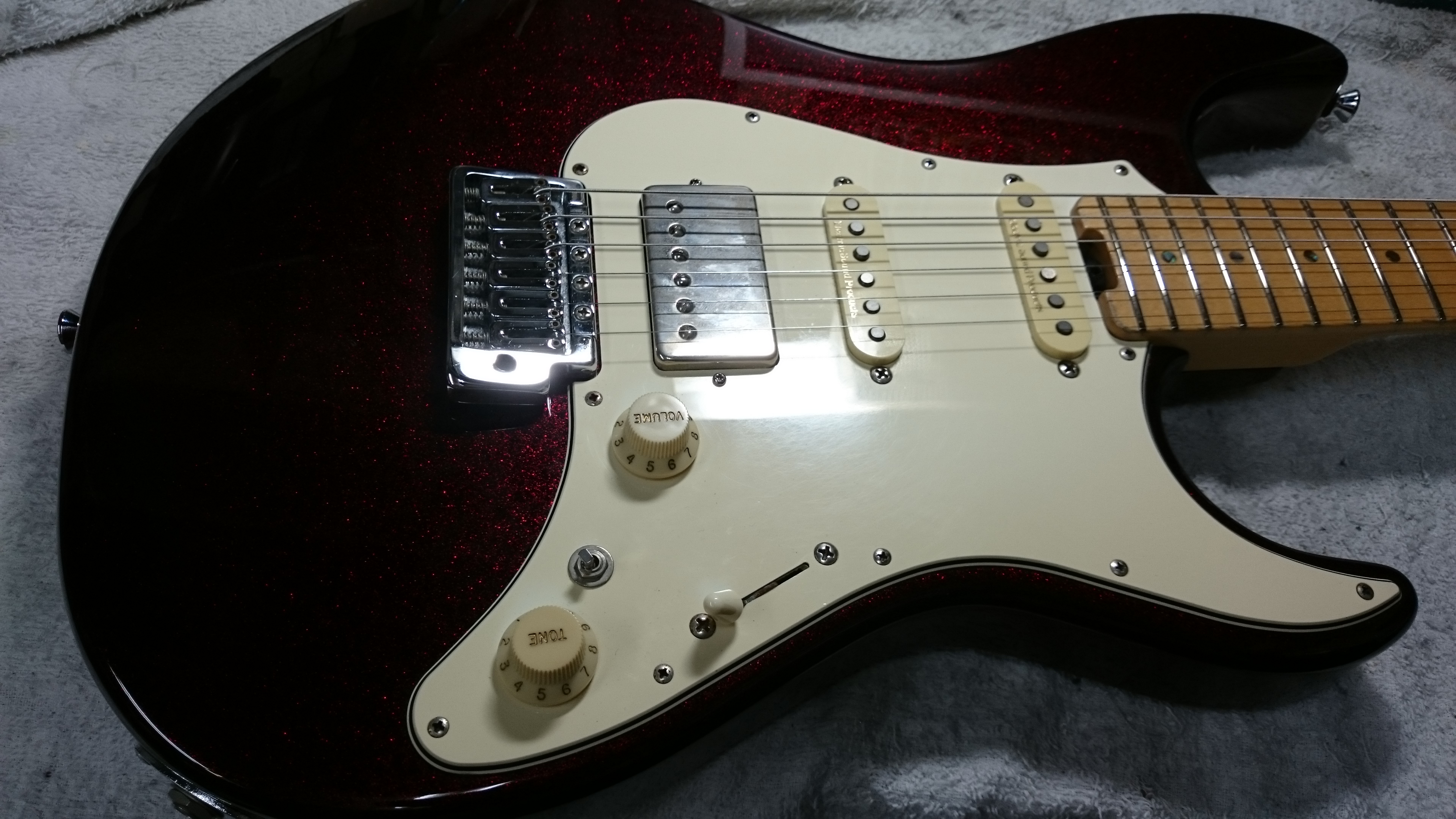 PRSだとレギュラーモデルの音を想像しますがこちらはちょっとレギュラーの音と志向が違う様ですね。型番はS2でしょうか、型番に無いピックガードですね。